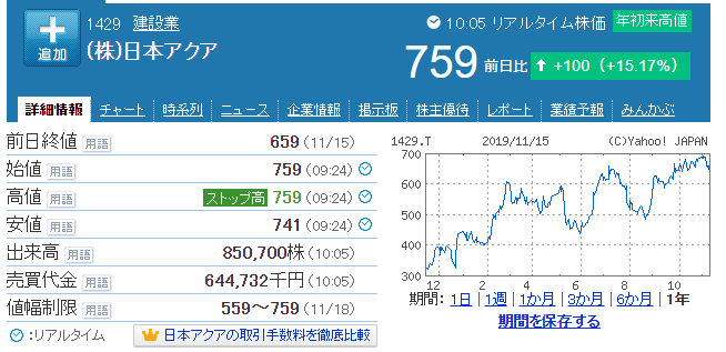日本アクアがストップ高/通期純利益予想を8.9億円から11.5億円に上方修正、配当は前年実績の10円から17円へ増配見込み 投稿日: 2019年11月18日 投稿者: pujapan 11/18 日本アクア(1429)の株価がSTOP高の759円を付けている。 同社は戸建て、RC構造向けウレタン吹付断熱で業界最大手の一社。 戸建て、RC向け受注が好調なほか、不燃ウレタンの受注も好調であるという。また、MDI市況の下落も利益を押し上げたと見られる。 https://stocks.finance.yahoo.co.jp/stocks/detail/?code=1429.T&d=1y より引用 共有: X で共有 (新しいウィンドウで開きます) X Facebook で共有 (新しいウィンドウで開きます) Facebook いいね 読み込み中… 関連