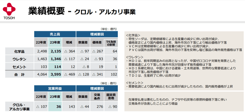 同社決算説明資料より:クロル・アルカリ事業の業績概要