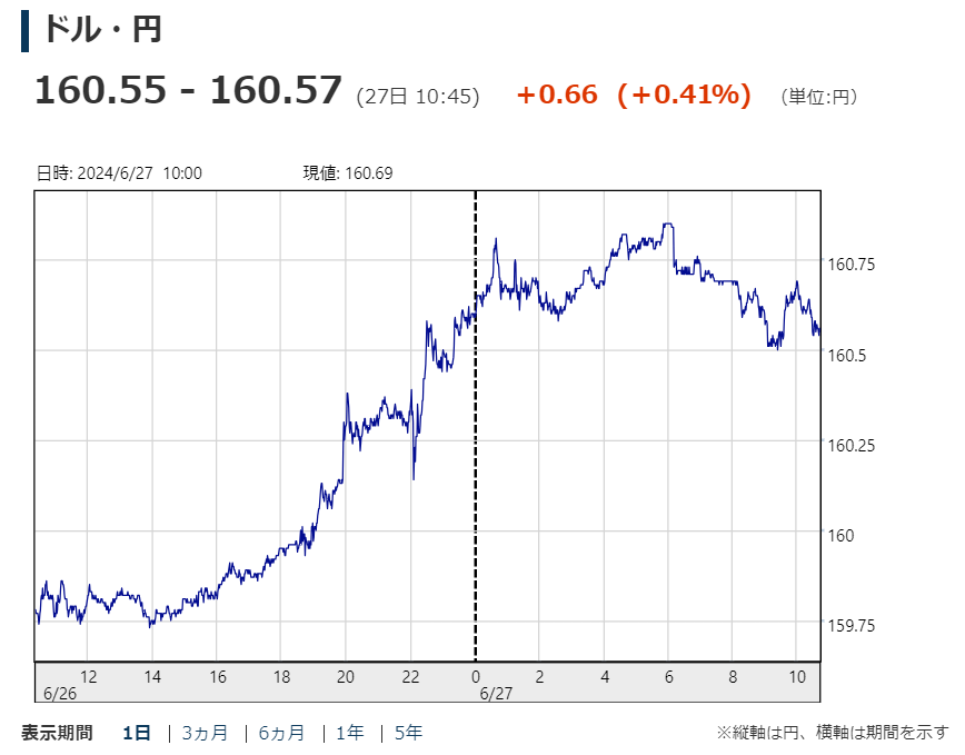 尚、財務省通関統計で採用される為替は下記通り。既に直近では161円/ドルに迫る状況となっている。