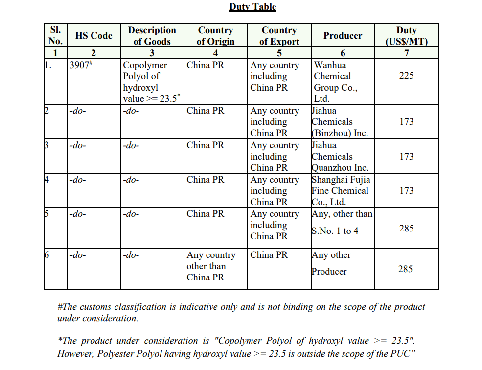 2025/9/26 インド当局は中国製POP(ポリマーポリオール/コポリマーポリオール)にアンチダンピング税を課すことを決定した。